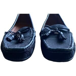 Preowned, gently worn. COACH Signature C Loafers Black Leather Driving Moccasin Women's 6.5 B Classic Black Casual Loafers Tassel Accents. This is in good condition with no rips, tears, or stains. There are signs of wear present, such as scuffs and some light wear. The soles are in good condition with no heel damage. See pictures!