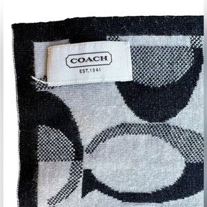 COACH Signature C Logo Reversible Black Metallic Luxury Scarf 62”x 8” Wool-Blend