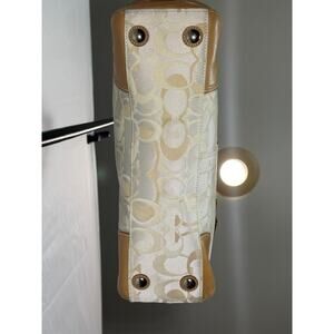 coach bag, satchel, shoulder bag, signature canvas, khaki bag, tote bag, classic style, everyday bag, structured bag, leather trim, vintage coach