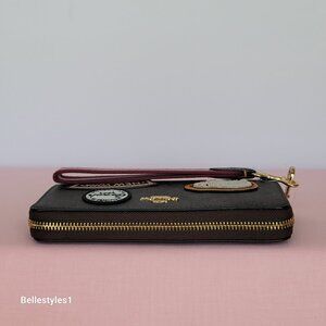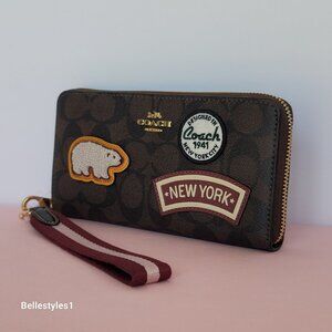 COACH Signature Canvas With Ski Patches Zip-Around Wallet/Wristlet-Brown Black