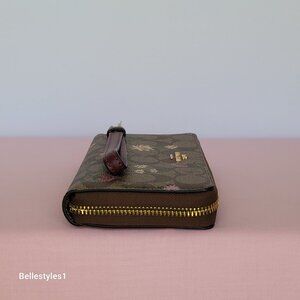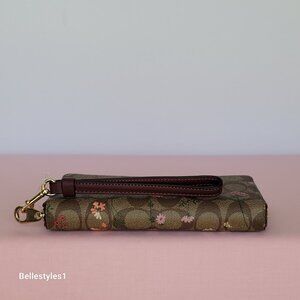 COACH Signature Canvas With Wildflower Print Zip-Around Wallet/Wristlet-Khaki M