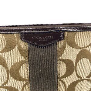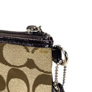 COACH Signature Canvas Wristlet Pouch w/Leather Trim
