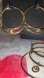 BANGLES: Set of three bangles each with a different charm. Approximately 2.5 in diameter, 7.5 circumference.