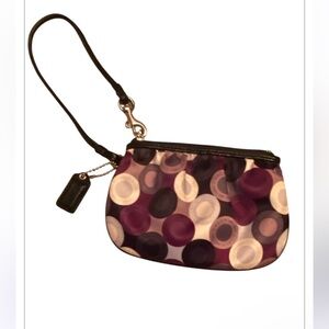 COACH Signature Circles Wristlet Satin Gray Berry with Leather Strap