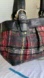COACH Signature Glitter Red Black Tartan Plaid Shoulder Bag Dust Bag Chic Coach tote with black leather trim and red tartan design. Ideal for versatile use. Condition very good use condition