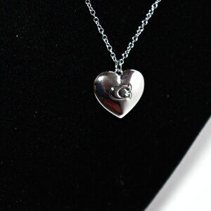 COACH Signature Heart Short Pendant Necklace in Silver #517774RHO030 NWT