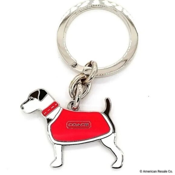 Coach Red Enamel Puppy Dog Silver Key Chain