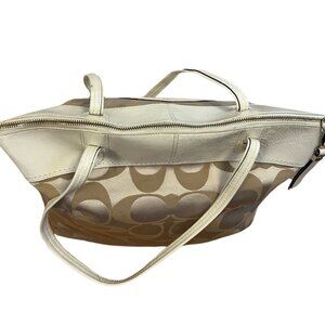 COACH Signature Laura Cream & Beige Large Shopper Tote