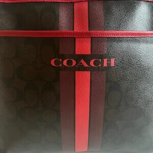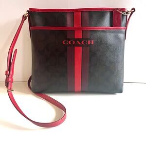COACH Signature Leather Racing Stripe, Brown and Red, AUTHENTIC Crossbody