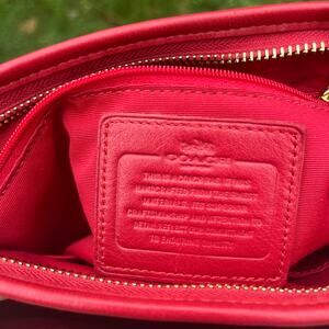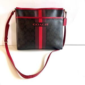 COACH Signature Leather Racing Stripe, Brown and Red, AUTHENTIC Crossbody