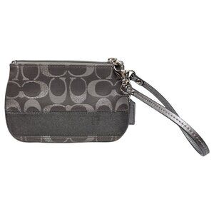 COACH Signature Legacy Striped Wristlet Grey Silver Jacquard Logo Wallet Clutch