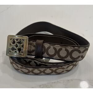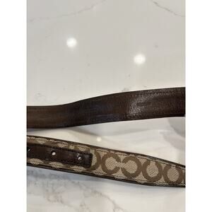 COACH Signature Logo KNS BELT Brown Sz Medium Leather Classic Gold C Buckle EUC