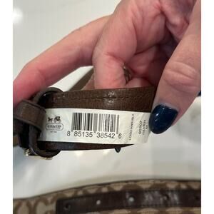 The COACH Signature Logo KNS BELT in Brown is a classic leather belt designed for women. Featuring the iconic Logo C pattern, gold C buckle, and adjustable fit, this belt exudes a timeless elegance. Made from high-quality brass, canvas, and leather materials, this belt adds a touch of luxury to any outfit. With a waist size range of 34-35 inches and medium width, it is the perfect accessory for those who appreciate both style and comfort. Perfect for everyday wear or special occasions, this COACH belt is a versatile and chic addition to any wardrobe.