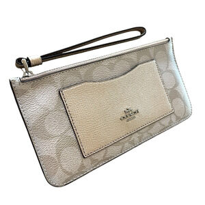 COACH Signature Metallic Gold Colorblock Leather Zip Top Wallet Wristlet F39672