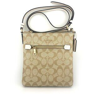 COACH Signature Mini Rowan Canvas Light Khaki and Chalk File Crossbody Bag, NWT