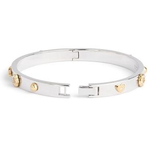 Everyday bangle bracelets feature mixed motifs including signature logo, tea rose and hearts. Adorned with minimal stone accents.