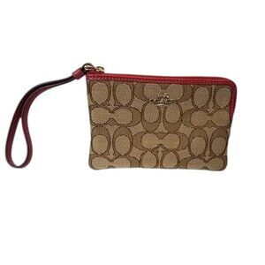 Coach Signature Monogram Khaki/True Red Zip Wristlet, NWT