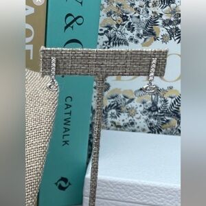 Elegant silver dangle earrings featuring sparkling crystal accents. Perfect for any occasion.