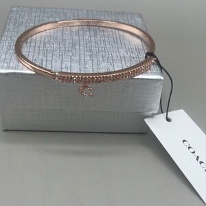 COACH Signature Pave C-Bar Bangle Bracelet In Rose Gold & Cubic Zirconia NEW