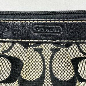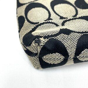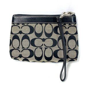 COACH Signature Pleated Wristlet Black & Grey Canvas & Leather 7" x 5"