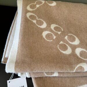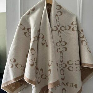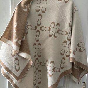 COACH Signature Poncho Chalk Taupe Wool Reversible One Size Logo