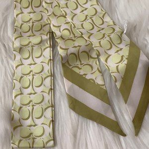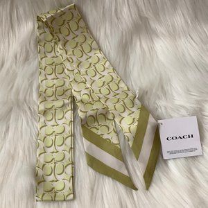 COACH Signature Print Silk Skinny Scarf Set in Pale Lime/Bone Grey