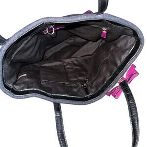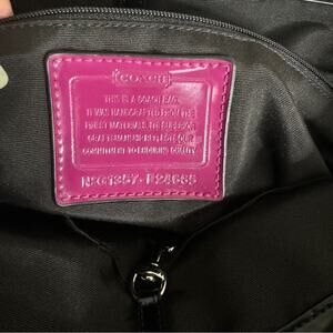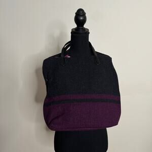 COACH Signature Stripe Wool Tote Black Purple F24786