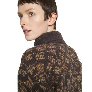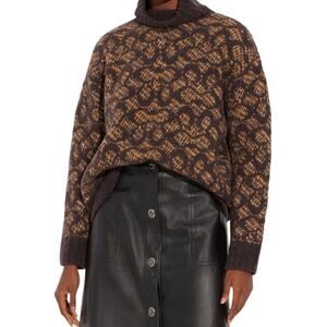 COACH Signature Turtleneck Sweater Women M Brown Wool Alpaca Chunky Knit Luxury
