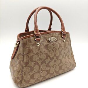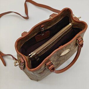 COACH Signature logo coated canvas small satchel crossbody - Brown