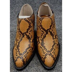 COACH Size 5C Low Western Booties Python Print Block Heel Leather Brown