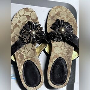 COACH Skye Brown and Gold Sandals with Floral Embellishments Sz 7B Women