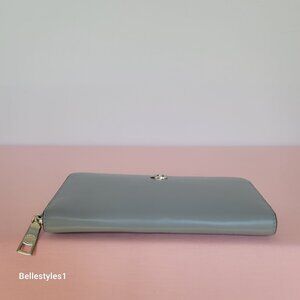 BRAND NEW WITH TAGS. Grey Blue color. A zip-around leather wallet is perfect to keep your essentials secure. Crafted of smooth leather with C logo Silver-tone hardware.