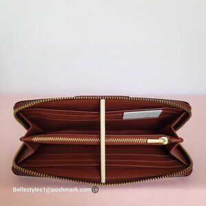 BRAND NEW WITH TAGS. Tan Rust color. A slim zip-around wallet is perfect to keep your essentials secure. Crafted of Signature coated canvas and smooth leather with a back slip pocket and C logo at front.