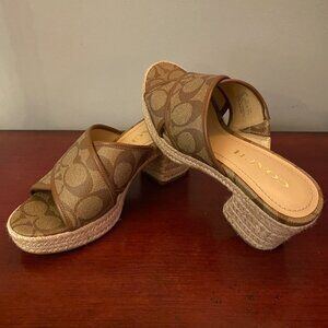 COACH Sloan Signature Khaki Saddle Espadrille Sandals Slides - Size 5. Very gently worn. Great condition.