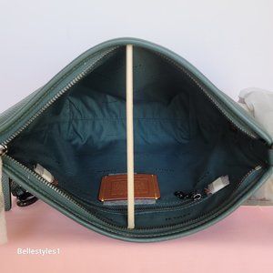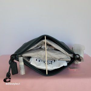 BRAND NEW WITH TAGS. Forest color. An iconic Coach silhouette, the Dufflette is a relaxed, compact design with an ultra-chic appeal with room for small essentials for every day wear. Features an adjustable wide strap for comfortable wear. Crafted of soft polished pebbled leather with an interior zip pocket.