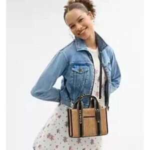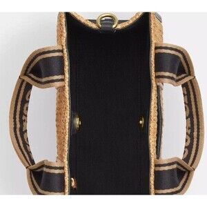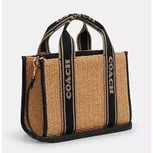 COACH Smith Tote Bag 24 CAL89 Toast Black Crossbody Straw Leather Purse NWT
