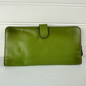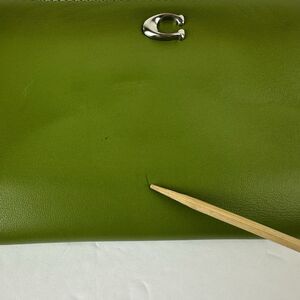 COACH Smooth Leather Skinny Snap Tab Slim Wallet Dark Lime Green CH823 Used - Good used condition. Clean. Leather has some dents and scratches and couple tiny pen ink marks.