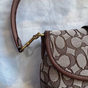 This bag from COACH is a perfect blend of style and functionality. Crafted from luxurious leather, it features the iconic Signature jacquard, adding a touch of sophistication to your everyday look. The spacious interior, complete with an inside zip pocket, keeps your essentials organized, while the detachable handle with an 8.75" drop offers versatile carrying options. Whether you're running errands or attending a special event, this bag will elevate your style effortlessly.