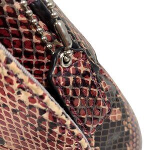 Elevate your style with the COACH Soho mini crossbody, featuring a luxurious purple and pink python snakeskin leather design. Perfect for adding a bold touch to any outfit.