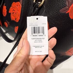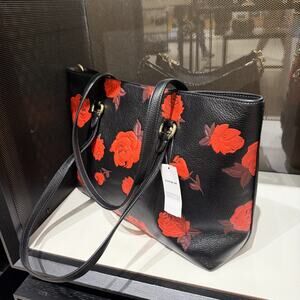 COACH Station Tote Bag With Floral Print CCE23 pebbled leather/Im/Black/Red