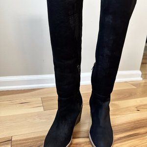 COACH Suede Knee High Boots Shearling Wedge Boots - Size 7B