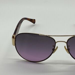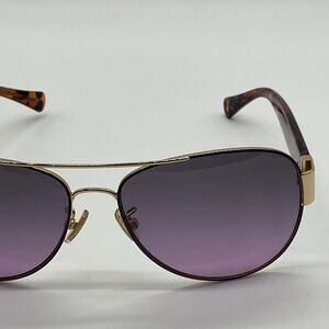 The round style and 58mm lens size provide a comfortable fit for all face shapes. The purple lens color adds a pop of color to the overall design. Whether you're running errands or attending a special event, these COACH sunglasses will elevate your look effortlessly.