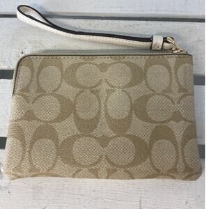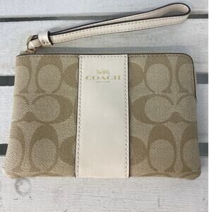 COACH TAN, IVORY SIGNATURE WOMENS SMALL WRISLTET, WALLET