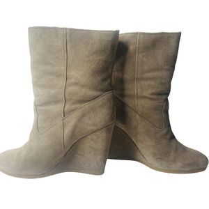 COACH TAN DANEE SIDE ZIP WEDGE HEEL BOOTIE FUR SHEARLING LINING SUEDE SIZE 9.5