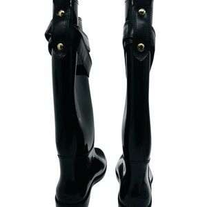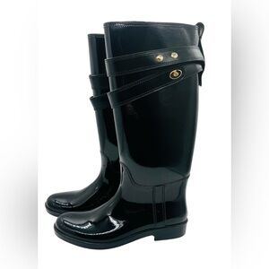 COACH TARA TALL BLACK GLOSSY RUBBER RAIN BOOTS SIZE 11