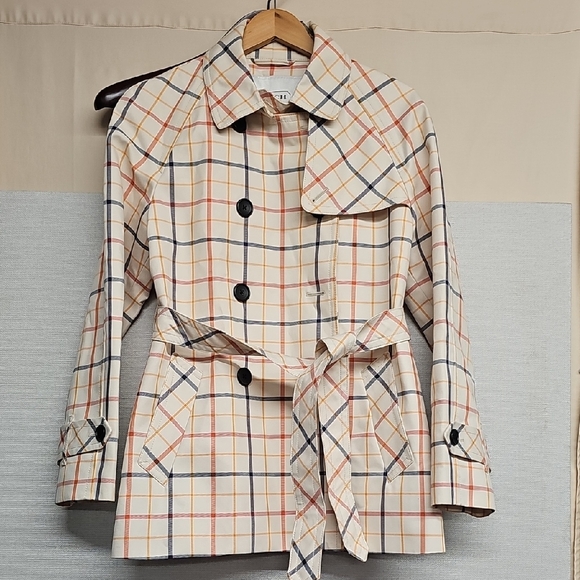 COACH TATTERSAL BELTED SHORT CLASSIC LINED TRENCH COAT