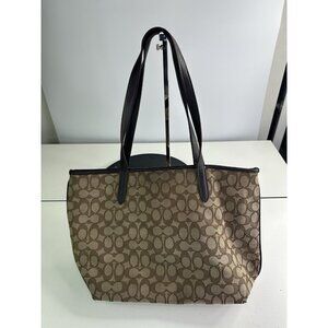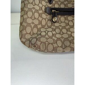 COACH TAYLOR PURSE Khaki & brown Signature C Jacquard Shoulder Tote Bag 37229
