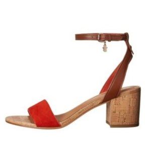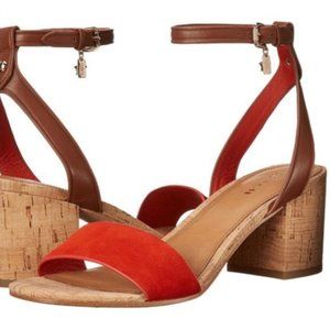COACH THOMPSON SUEDE CALF CARMINE SADDLE SANDALS HEEL SIZE 6.5