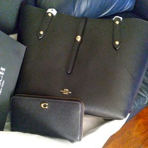 COACH TOTE BAG LARGE SHOULDER BAG BLACK RED & COACH WALLET SET NWT