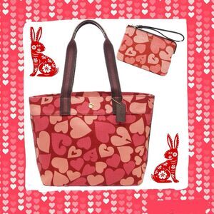 COACH TOTE PURSE HANDBAG WITH COACH HEART PRINT & WRISTLET POUCH NWT